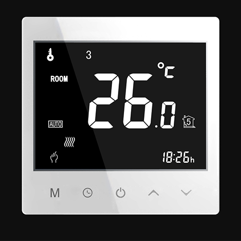 觸摸式液晶采暖溫控器R3382,采用國際最先進(jìn)的微電腦控制芯片,通過溫控器內(nèi)部或外部的高精度傳感器,檢測溫度,并實(shí)時(shí)與用戶所設(shè)定的參數(shù)進(jìn)行比較,自動(dòng)開啟、關(guān)閉加熱設(shè)備,以達(dá)到保持室內(nèi)恒溫的目的。每天可設(shè)置6個(gè)時(shí)段和對應(yīng)的設(shè)置溫度,或可以選擇手動(dòng)模式。特有的低溫保護(hù)功能,當(dāng)室內(nèi)溫度低于最低保護(hù)溫度時(shí),打開加熱設(shè)備,使電器設(shè)備在合理的溫度下工作,延長設(shè)備的使用壽命,使系統(tǒng)更加安全、可靠、節(jié)能。系列采暖專用多功能大屏幕液晶顯示室內(nèi)溫控器,采用微電腦控制技術(shù),以室內(nèi)溫度和設(shè)定溫度的比較結(jié)果,通過上位機(jī)遠(yuǎn)程采集監(jiān)控